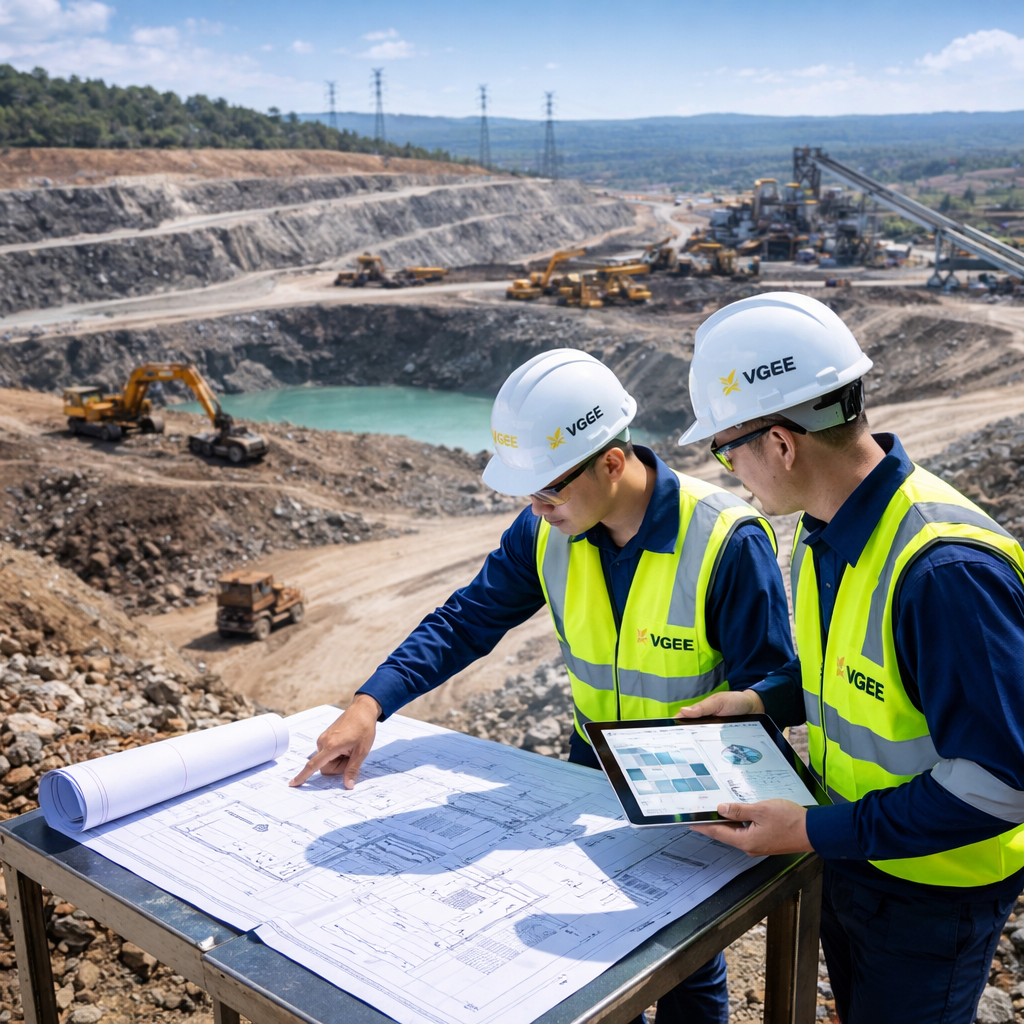 VGEE provides construction management support, site coordination, contractor interface management, and commissioning oversight for mining infrastructure projects. Safety management and environmental compliance are embedded throughout project execution.